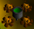 There are multiple poisonous Tribesmen around their Tribal brew in the southwest. There is also a Stone head nearby that points to the northern Gold rocks and the entrance to the Fisher King Realm (grey area on the north peninsula).