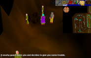 First section is full of iron, copper and tin. To get to the lift platform the player must bribe the guard in the end with Tenti Pineapple. This must be done only once during the quest.