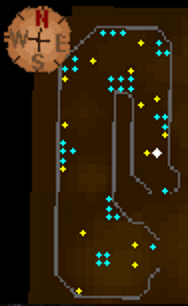 Western path contains 6 Clay rocks and a jail with strange rocks and Bronze Pickaxes. The jail portion of the path, can only be accessed during the Tourist Trap quest (see Crude bed).