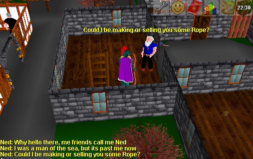 Now that the ship is repaired, head to Draynor Village with the map and convince Ned to sail you to Crandor. Once he agrees, he says he will meet you on the ship at Port Sarim.