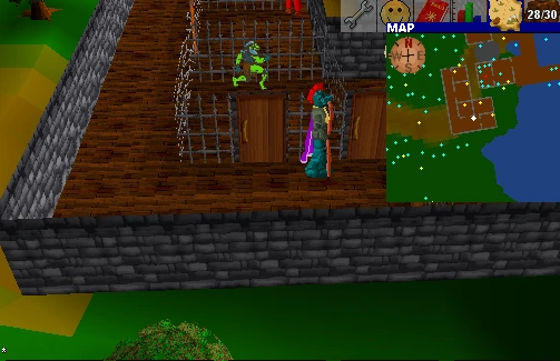 You will see the goblin Wormbrain behind bars and a door that you cannot open. Kill him using magic or arrows, and then cast Telekinetic grab on the piece of map he drops.