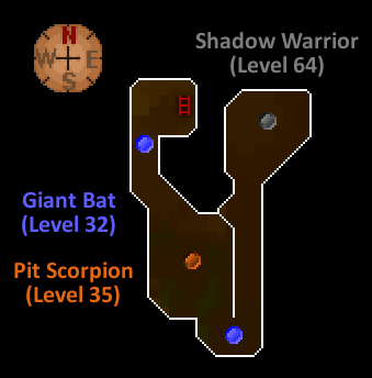 The main draw to this dungeon is credited to Shadow Warriors which have an increased chance to drop rare items such as the left Half Dragon Square Shield. Pit Scorpions have also been noted to offer a decent amount of combat XP per hour to those fighting them, although they drop nothing at all meaning there is no profit in fighting them.