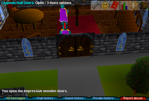 Sir Radimus Erkle is in charge of the Legends Guild and his house is outside the main building. Inside the building is a desk and a cupboard which contains a machette. If this cupboard is searched with a machette in the players inventory, the following message is displayed: "The cupboard is empty."