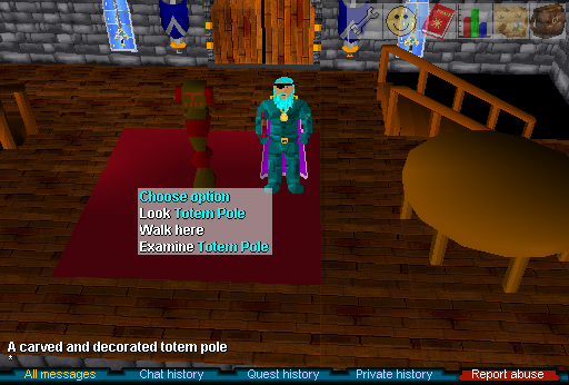 In the main building's ground floor there is a Totem Pole, round table and a throne.