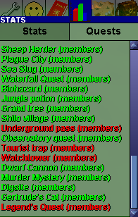 - Unlike in RuneScape 2, quests remain colored red until they are completed. Quests in progress aren't colored yellow.