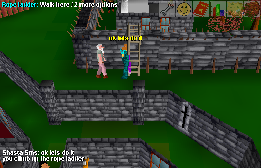 The rope ladder is a piece of scenery used to enter and exit the quarantined West Ardougne during the Biohazard quest with the help of Omart and Kilron.