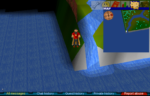 In RuneScape Classic, the client automatically fills any undefined regions with water if the player is on the ground floor[UK], or darkness if they are upstairs or down. It is for this reason that the Unknown is sometimes referred to as the "sea" or "ocean".