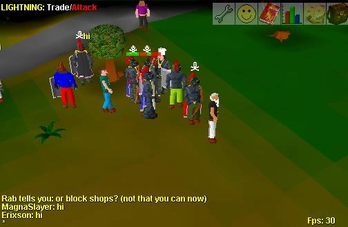 - Prior to the addition of Wilderness in 13 August 2001, players were susceptible to death by another player across RuneScape. The areas were also multi-combat. When "Player-Killer" mode came out three indicators hinted the other player's combat: red, if the person was higher than you, white, if they were the same level as you, or yellow, when they were lower.