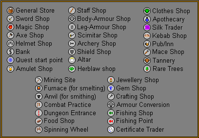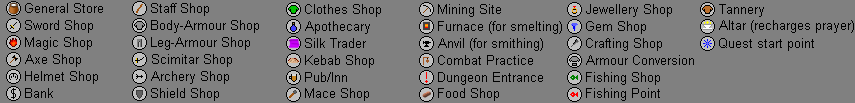 | First map key placed 20 markers. With the addition of the Varrock Bank it soon became expanded on the next world map revision. | |