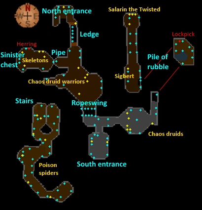 | Ropeswing | 57 | 27.5 | Yes | Between the Chaos druid warrior room and the Chaos druid room |